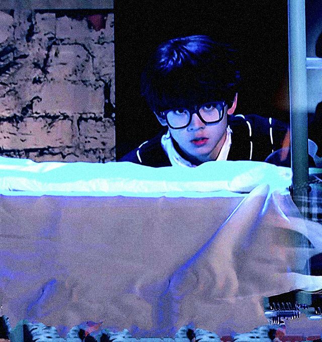 朱志鑫看着男孩带着一个眼镜可是感觉他还是把眼镜摘下来更好看.