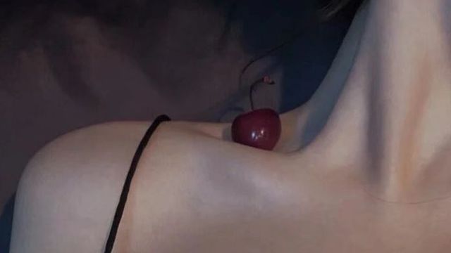画中的女人糜丽的柳叶眼轻佻勾人,陷在肩窝处的樱桃似乎变得更加美味,让人忍不住想要一尝究竟。