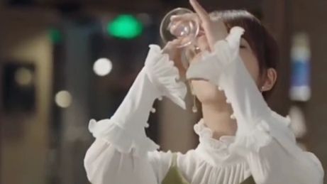 温恋一口气把红酒喝完了。