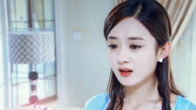 她的眼圈泛红,晶莹的泪水无声地流了下来,顺着脸颊滚落,鼻尖上挂着一颗泪珠盈盈欲滴,显得楚楚可怜。