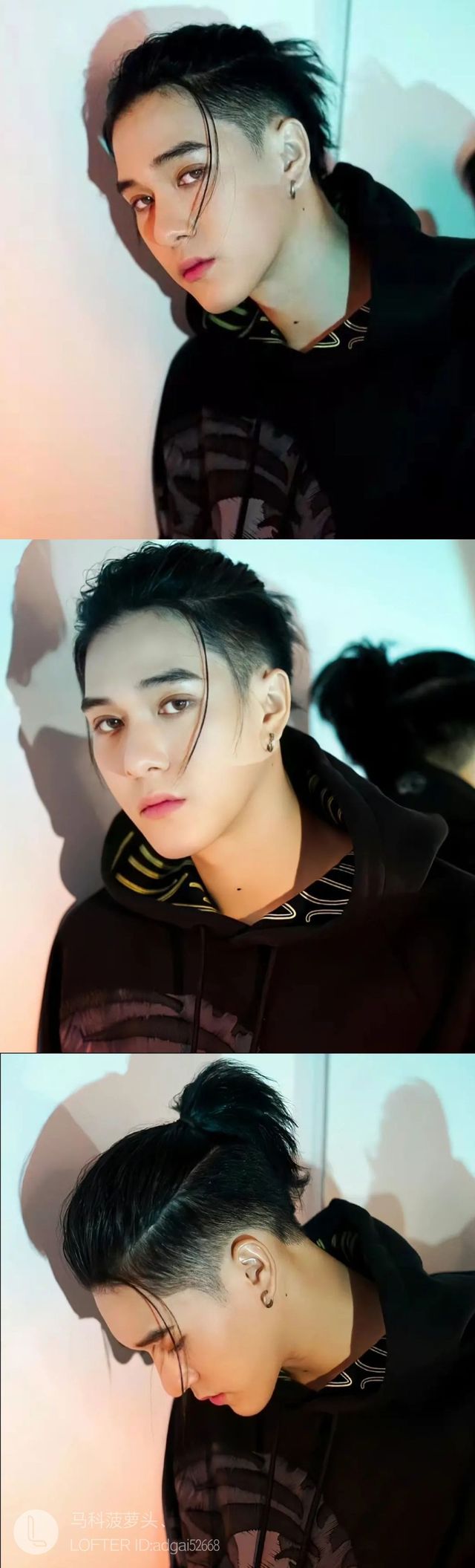 摘了发圈后,略长的发丝挡住他的眼睛,阴鸷眼神更显锋利。