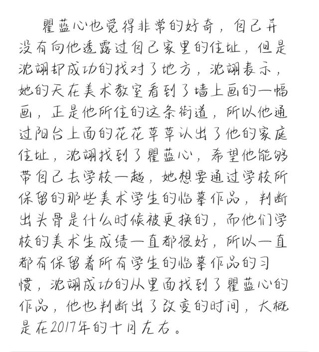 杜城他们根据日记里的内容判断,当时的任晓玄一直都在遭受校园霸凌,而且甚至有人曾经对他进行过猥亵,同时,他的日记里面也记录到了另一个关键线索,就是他有一个非常喜欢的男孩,沈翊通过日记本里面任晓玄对那个男孩的描述,想要对她喜欢的这个男孩进行画像,而那边的杜城则判断出,那个猥亵了任晓玄的人,很有可能就是当时的老师,于是他找到了学校的人,调查了这些年来的教师档案。他们得知在那段时间确实有一位老师因为猥亵学生而被学校开除了,现在他一个人经营着一家画廊,杜城带着沈翊来到了画廊。