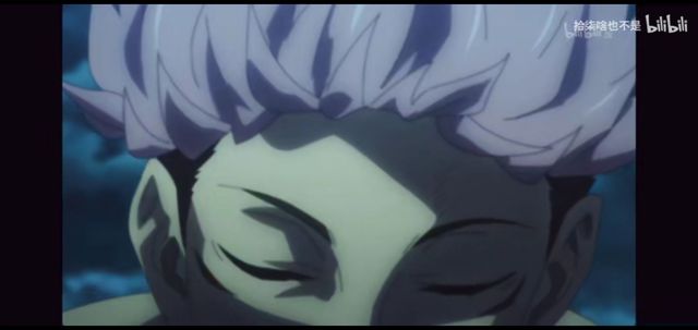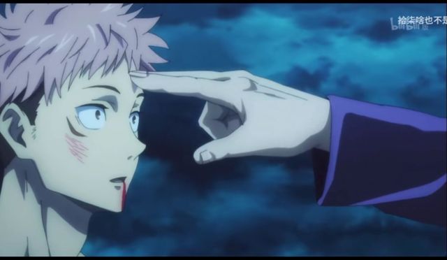 画面随着五条悟的手移动。几秒后,手指停在了虎杖悠仁的额头上。