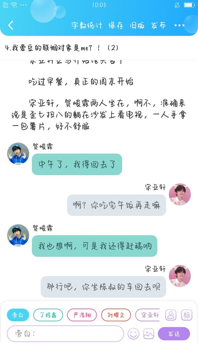 宋亚轩坐下,拿起筷子往嘴里扒饭,菜都不敢夹,生怕一不小心撞到旁边的刘耀文,那真是糗了