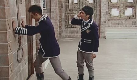 坚尼和蓝宝找到了教室门,可是始终都开不了门,就在他们僵持不下时,芭比走了过来。