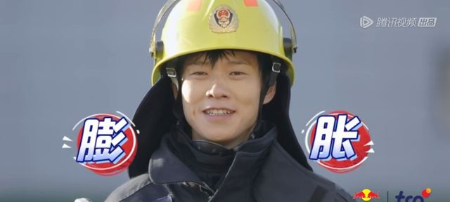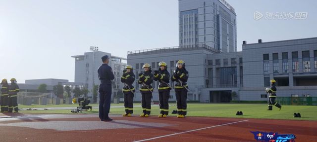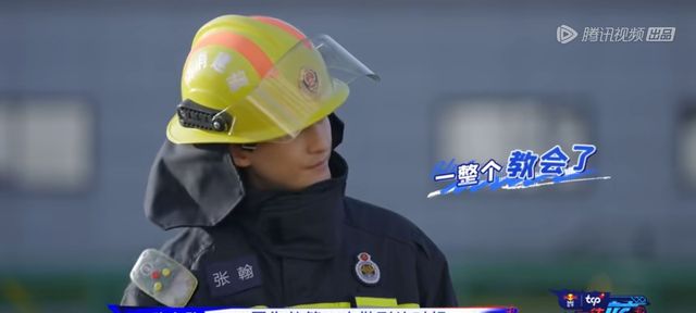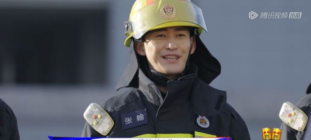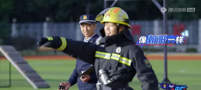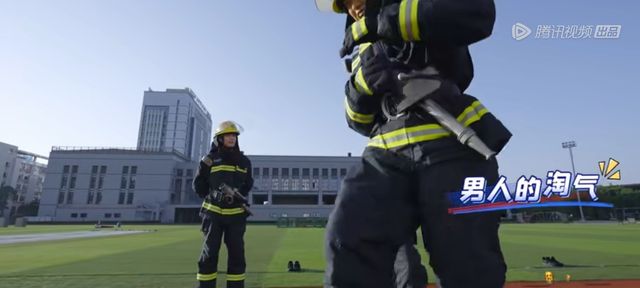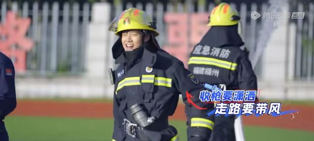 张天水先是穿着全套灭火防护服,穿过我们的火圈