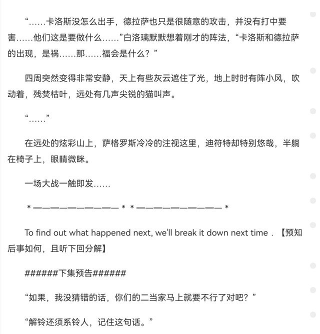 To find out what happened next, we'll break it down next time.【预知后事如何,且听下回分解】