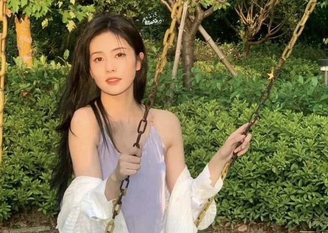 女孩身上穿着一件淡紫色的吊带,虽然是修身的,但是一点都不缺乏优雅,外面一件白色的条纹外套,安静地耷拉在她的胳膊上,整个人干净极了,好像遥不可及的星星。