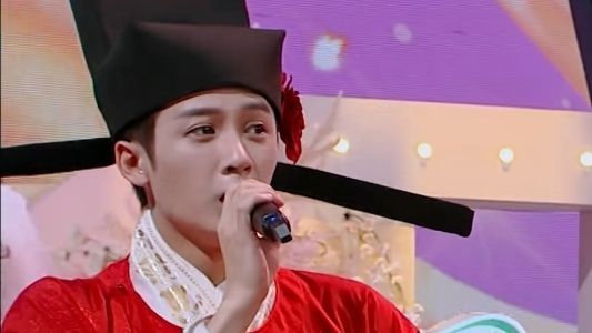 何炅圆领公袍。