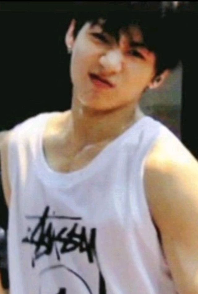 田柾国把篮球重新掌握在手里,往声源处看了看,一只手臂屈起夹紧球,另一只手撩起衣角擦了擦脸上的汗,露出的小片腹肌结实有力,汗水沿着脖颈流到锁骨,整个人汗涔涔又亮晶晶,一举一动都是属于少年人的意气风发。