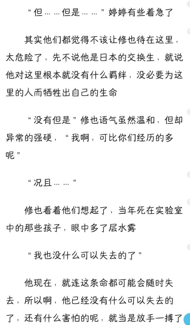 修也沉默了,他的周围似乎环绕着淡淡的悲伤,“……那是一段不可言说的过去。”