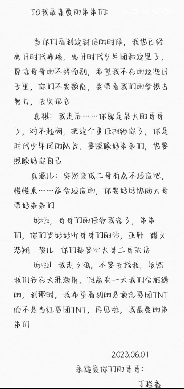 马嘉祺打开了那封写给他们的信,只属于丁程鑫给弟弟们的信
