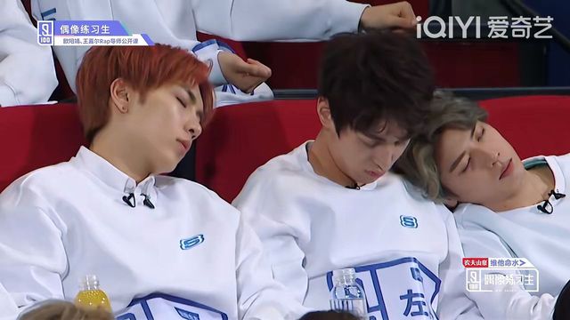 有一些练习生直接互相靠着睡过去了