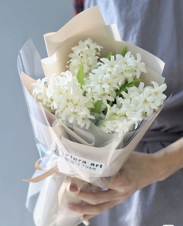 花店老板“这是白色风信子,花语是沉默的爱,不敢表露的爱,适合送给喜欢的女孩,但要是送给有鼻子过敏的人注意,不宜放在卧室里养”