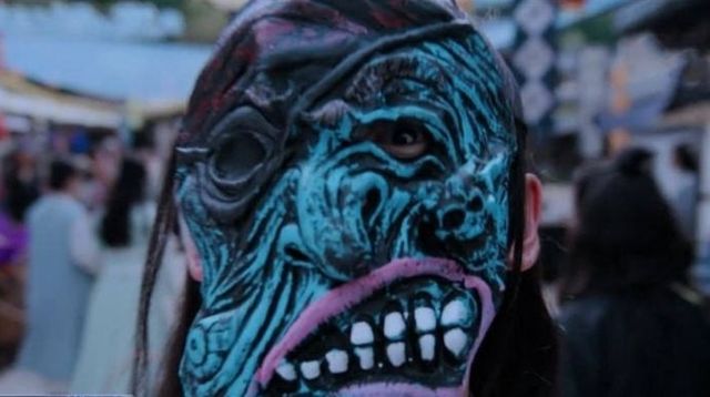 两个人回过头,看见魏无羡带着一个凶神恶煞的面具想要吓唬他们两个。晓情有些无语。