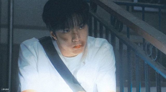 你原本想上楼碰碰运气看看能不能遇到刘耀文,没想到他就坐在楼道里。