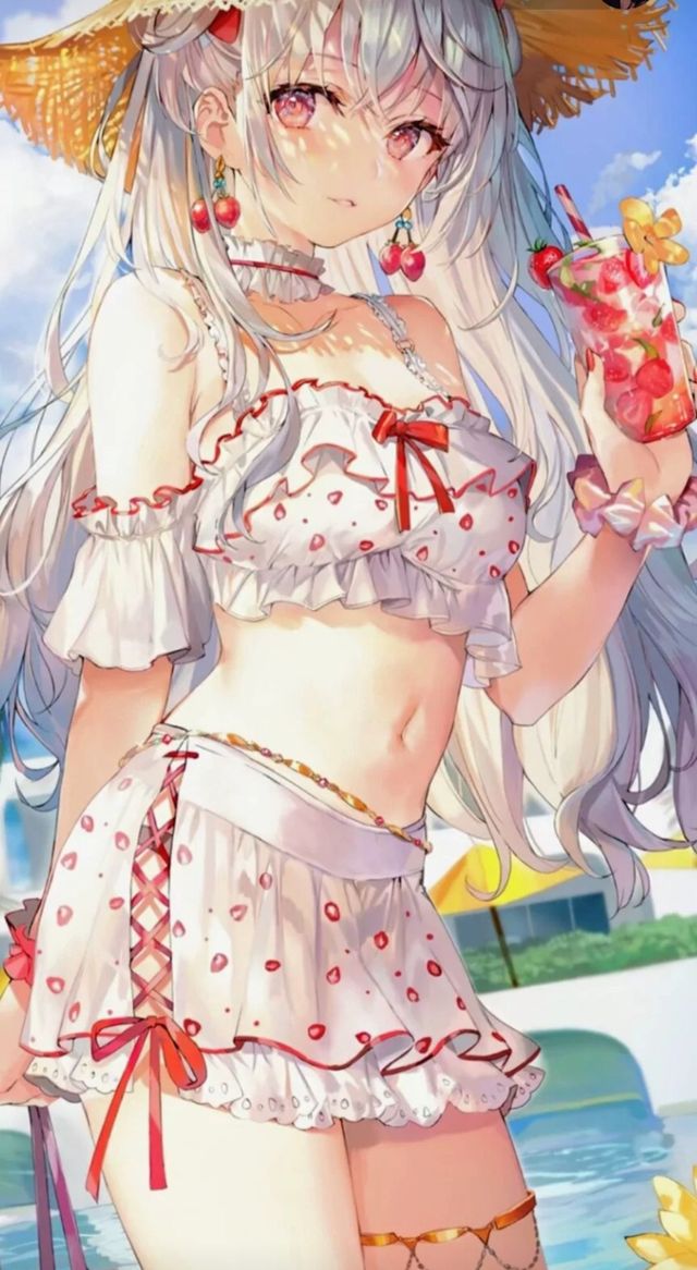 黑川千奈身着白色的露肩泳衣,上面还用红色作为点缀,还有层层叠叠的蕾丝点缀在美丽的裙子上,将她完美的身材展现的淋漓尽致。