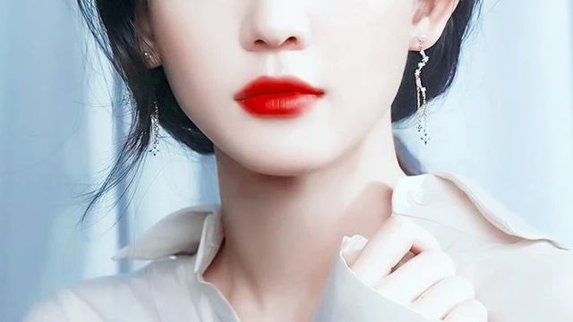女人白色的吊带裙搭配上西装外套,妖艳且不俗气,黑色的长发及腰,脸上妆容精致