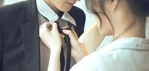 玄关处,男人低头看着女孩给自己打领带时认真严肃的小脸,轻轻揉了揉发顶