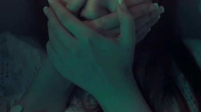 紧张之余也不忘记捂住自己的嘴巴,或许是条件反射的原因,她浑身颤抖