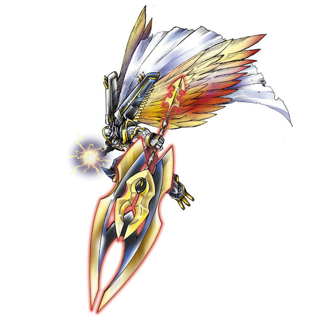洁白的天使从天上坠下来,跌落在寸草不生的荒土地上;阿尔法兽之背影站立在其身后,右手垂下王龙剑,威风凛凛。