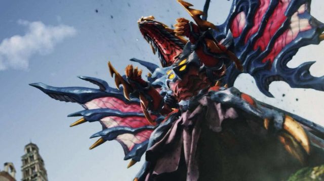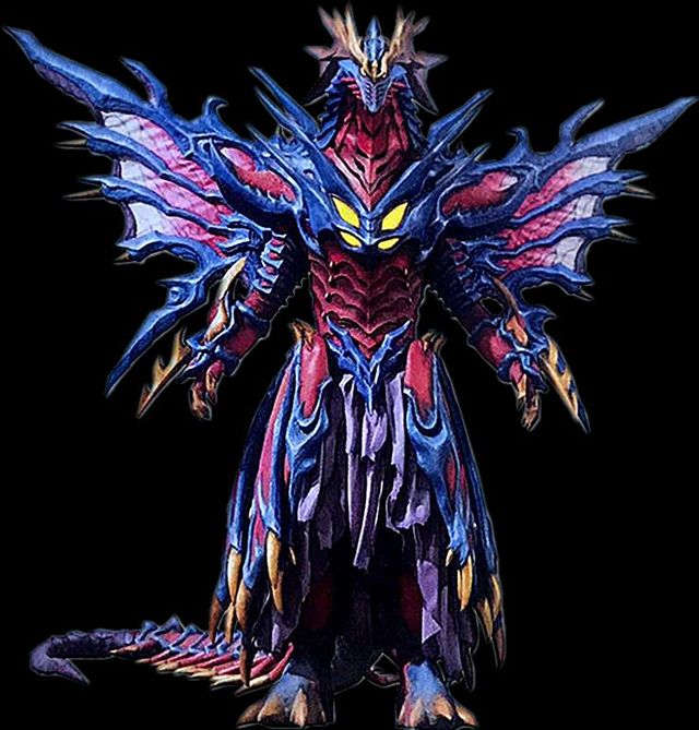 随着暗红色的光芒褪去,一只有着鲜艳的色彩,浮夸的风格,花枝招展的翅膀和尾巴,神龙一般的形象。