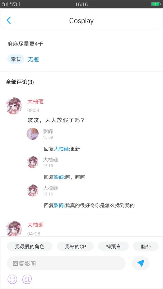 作者你在我评论下催我更新