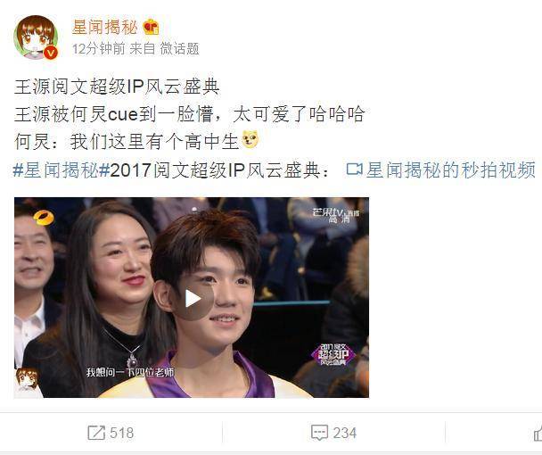今晚阅文超级IP风云盛典在芒果台如期播出,王源一开始在台下就被何老师cue到还是高中生,一脸懵的样子帅气又可爱。