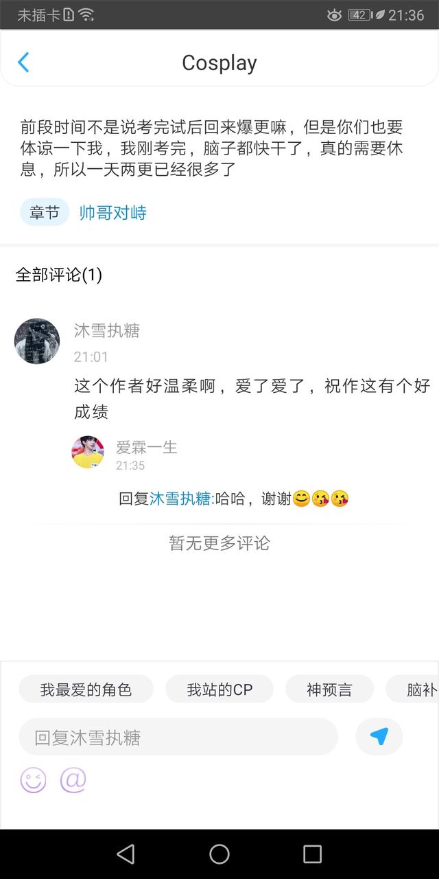 浮笙(作者)还有一些Cosplay你们评论的图片我都回复不了,不是说不能发图片哈,但真的没办法回复,所以想要回复最好发文字