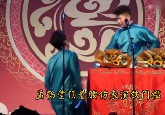【孟鹤堂顶着腰伤表演铁门槛,表演完就坚持不住跪在地上】