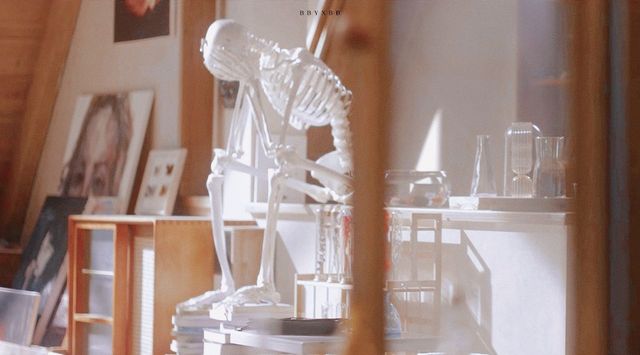 一身着湛蓝色毛衣,休闲米白裤,手拿一杯热气腾腾的牛奶的少年走到窗边,边喝着牛奶边看着室外的晨光风景。