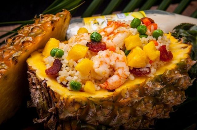 等了大概半个小时,两份菠萝饭送到了 餐桌上面,还有一杯鲜榨橙汁