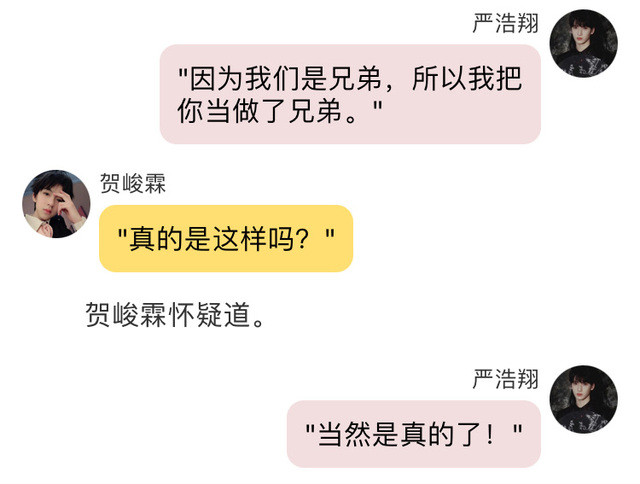 贺峻霖"哦!没什么事,我只是单纯想和你聊聊天而已。"