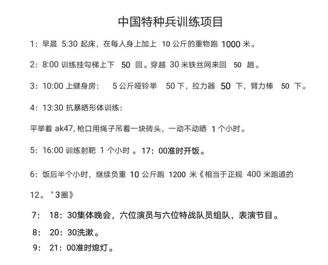 1:早晨5:30起床,在每人身上加上10公斤的重物跑1000米。