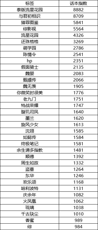 今日影视同人热度指数前35的标签如下: