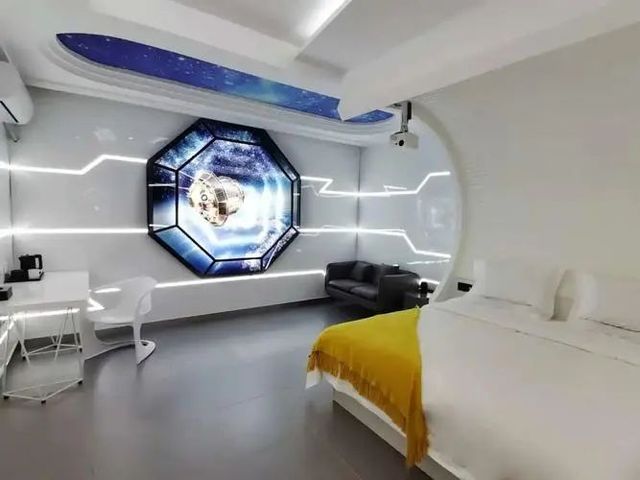 里面是纯白色,有漂浮的沙发,还有圆桌。