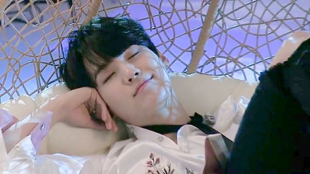 沈瑾安伸出手帮闵玧其轻轻顺着头发。