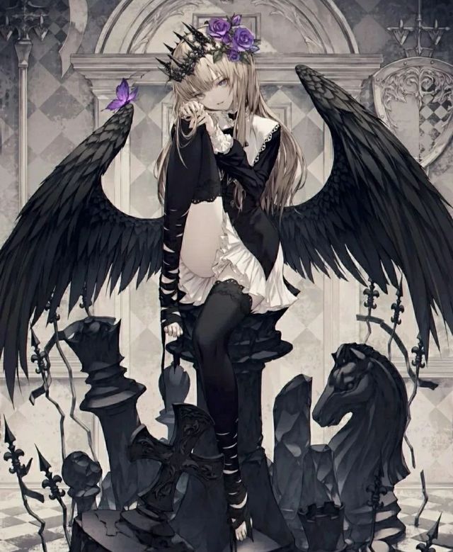 两人抱在了一起,一道光从他们身上散发了出来一个女孩子出现了,白色的头发,灰色的眸子,让人感到恐慌,背后一双黑色的翅膀一只紫色的蝴蝶落在了翅膀上,头上有一顶斜着的黑色王冠还有紫色的玫瑰,脚上绑着黑色的丝带,手持一柄血银色的长剑中间有一颗红宝石,那个女孩出现的那一刻,地上开满了紫色的玫瑰