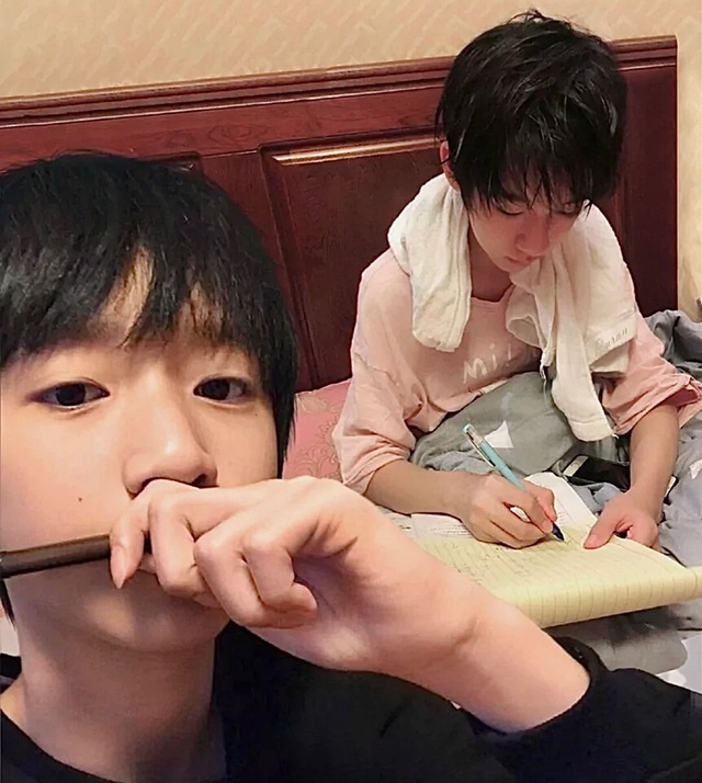 回到房间后,贺峻霖在床上写作业,严浩翔这是坐在一旁自娱自乐