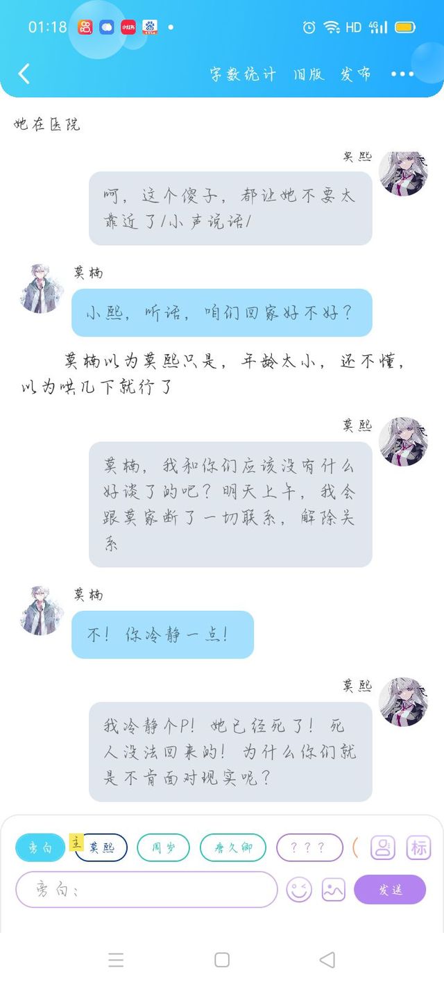 莫楠后来被医生拉开了,他从愤怒中缓过神来的时候已经快被拉出门口了。他只能看见被护士围绕在这里面的原莫一面。那样子,真的是冷漠至极,没有半分情感,就像是一个提线木偶一样看上去没有生命的样子。那时他仿佛醒了过来,当时的回忆又在脑海中重演了一遍