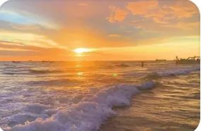 这回两个人已经在海边,正在,等着日落的出现呢