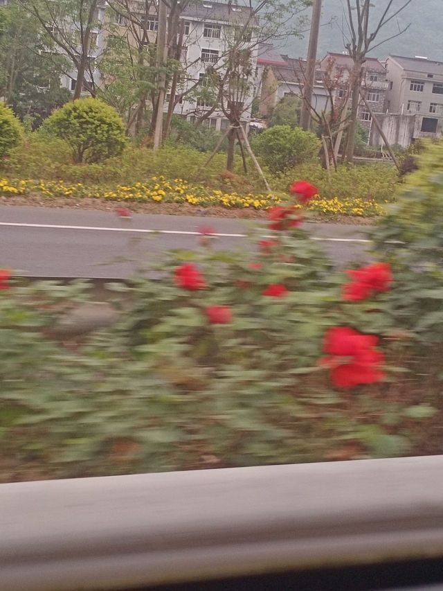 (红路灯停下的时候看到粉色的花花开的特别好看,想拍下来的说结果车开了,就只拍到这几朵焉了吧唧的花,放来应一下景。)