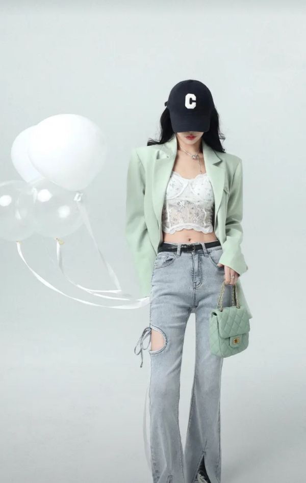 云延穿着一身帅气的西装,里面穿的紧身小吊带,正好跟这首歌很配