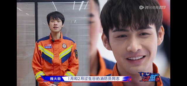 魏大勋“哈喽,大家好!我是魏大勋,祝我们一月份和二月份过生日的消防员同志,生日快乐,祝大家顺利出警,平安归来!”