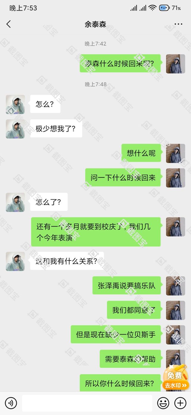张泽禹在一旁听着他们说话,一边看着张珺好回复的信息笑了笑