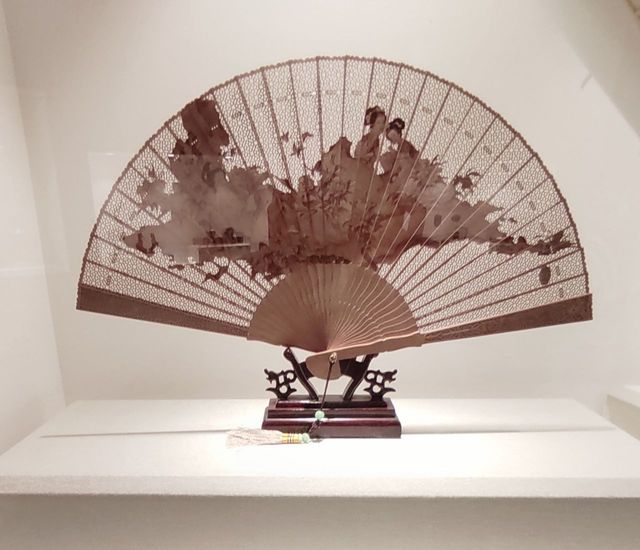这檀香扇倒是精美,整个扇子都是用木雕刻,又精致又小巧,谁要是不小心给这个艺术品弄上一点破损,先是价钱,还有应该是对艺术的折磨……