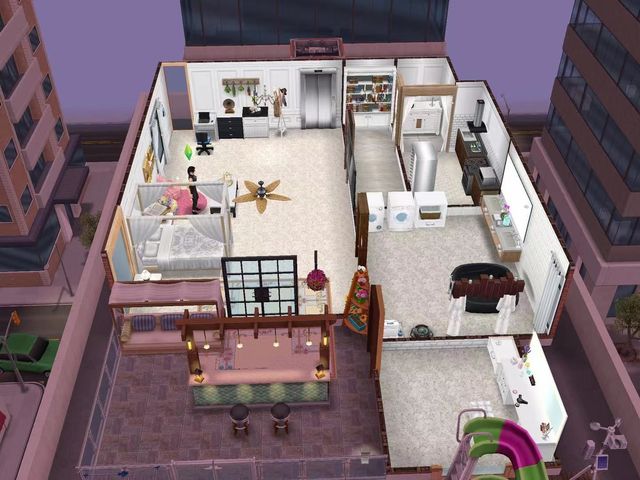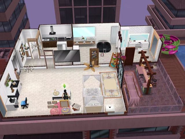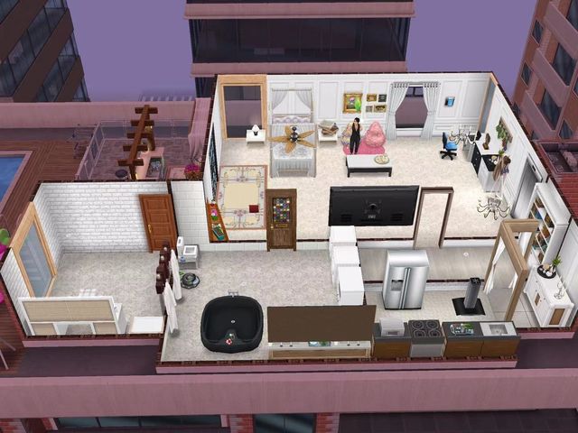 这是一间公寓式房子,进门右转就是客厅,左转是依次是玄关,厨房,卫生间,衣帽间。客厅靠里面就是一张大床,大床不远处就是阳台。不过,奇怪的是,她家的客厅居然是地毯和懒人沙发的组合,还有一张勉强能够吃饭的茶几。