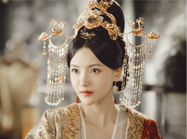 只见有一位佳人,身着金色丝绸云锦双翼凤凰花襦裙,头戴一顶金玉芙蓉冠,乌漆般的黑发梳着一个发髻,髻上分别簪了两支云亭鎏金珍珠步摇,耳上带着一对烟雨亭金丝珍珠耳坠,显得十分雍容华贵,长相堪称绝色,清冷又不失典雅,高贵又不失妩媚。
