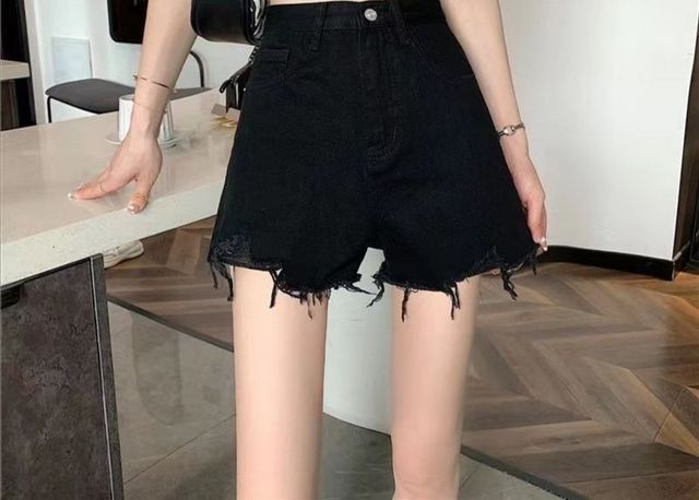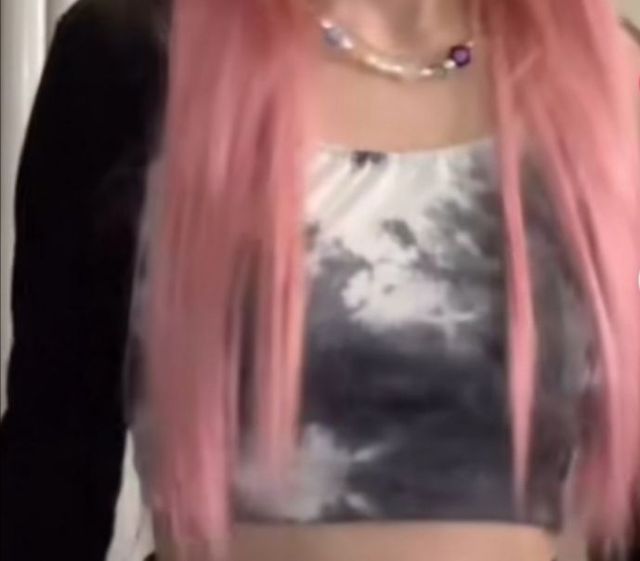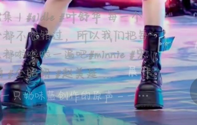 你穿了扎染吊带针织衫,下面是黑色牛仔短裤,黑色厚底短皮靴(如下)