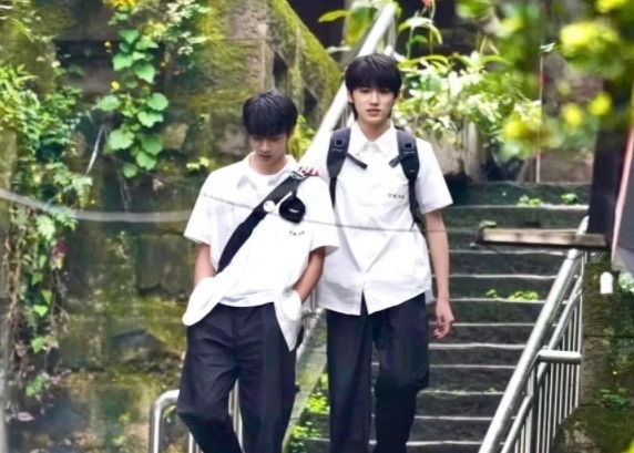 走廊里,三位风华正茂的少男少女逆光前行,只留下满地婆娑太阳光斑起舞。